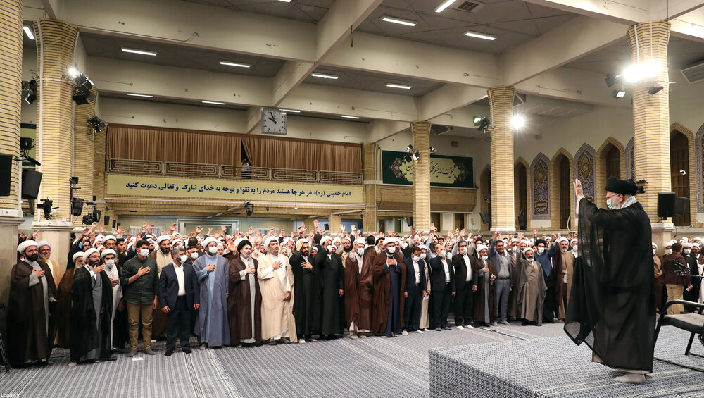 رهبر انقلاب در نکتهای مهم، حضور روحانیت در وسط میدان را کاملاً ضروری خواندند و گفتند: روحانیت اسلام، همیشه امیدوار و پرتحرک و جهادی، در وسط میدان بوده است.